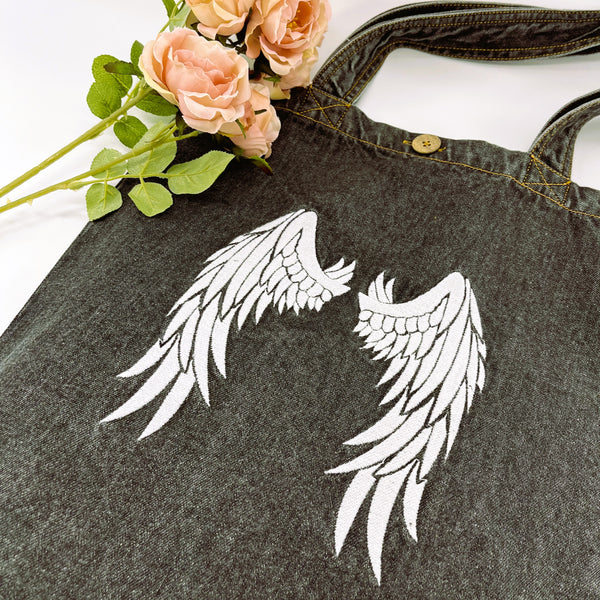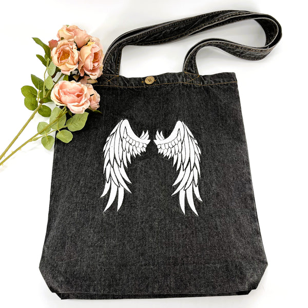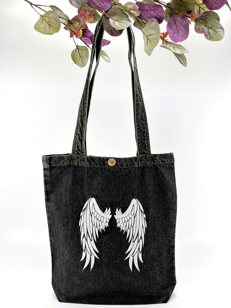 Angel Wings - Denim Tote Bag | Charcoal Denim