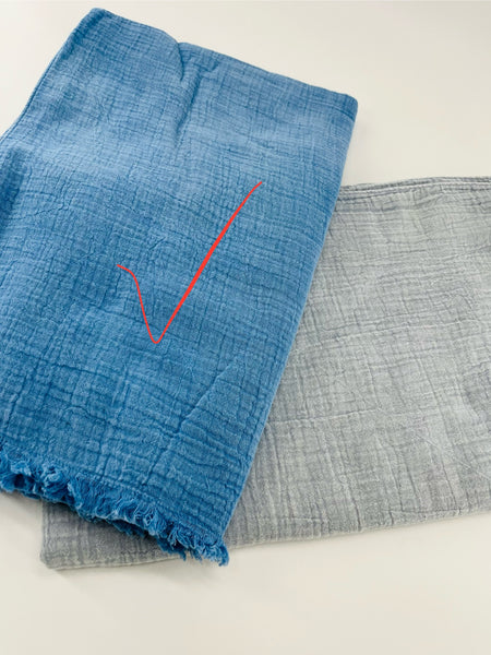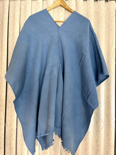 Double gauge 100% cotton poncho that can be worn in various ways. Color faded denim blue. Pre washed and pre shrunk. Wash in cold cycle with like colors. Light iron if required or air dry.